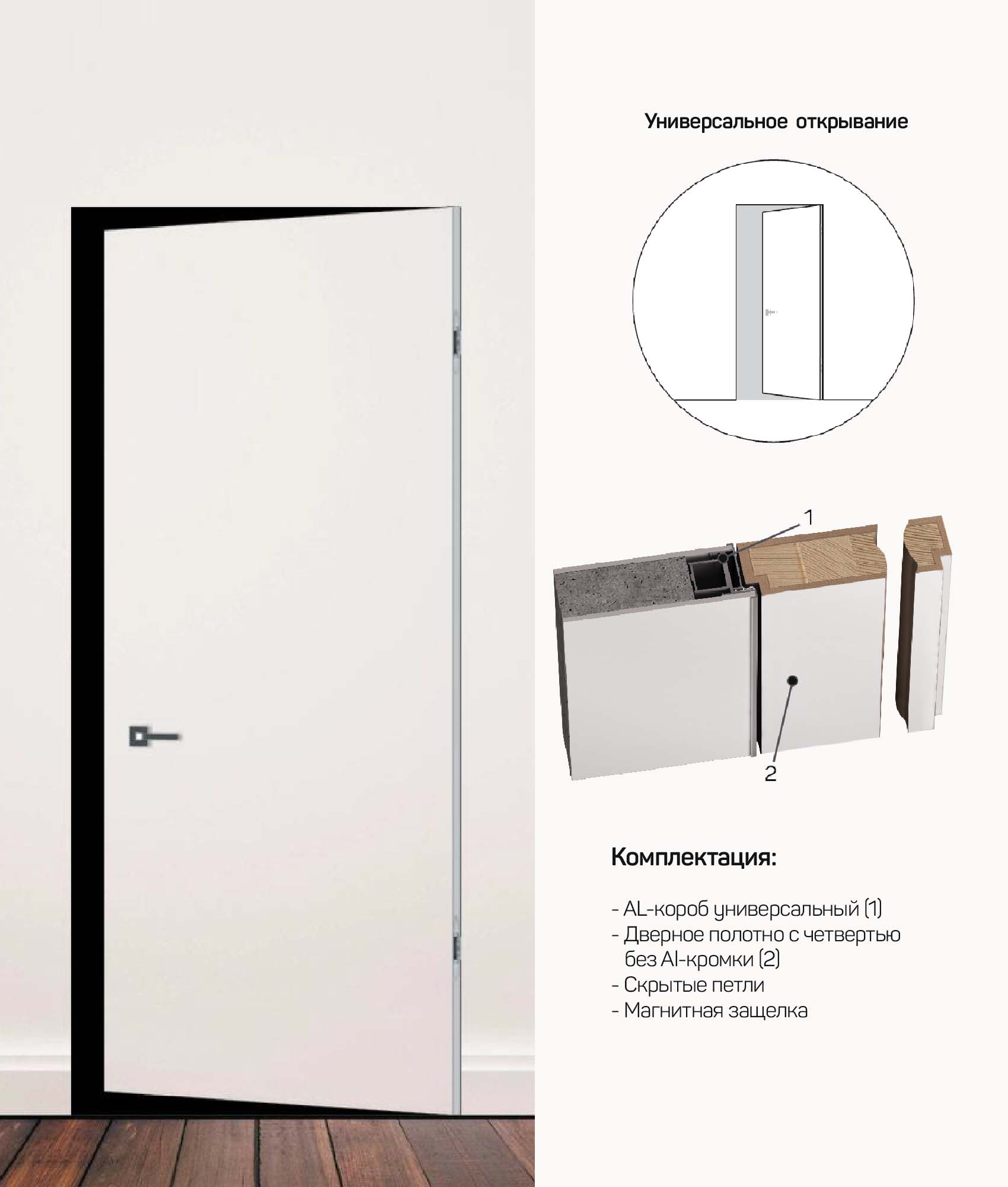 петли скрытые (2 шт.) замок магнитный (1 шт.)