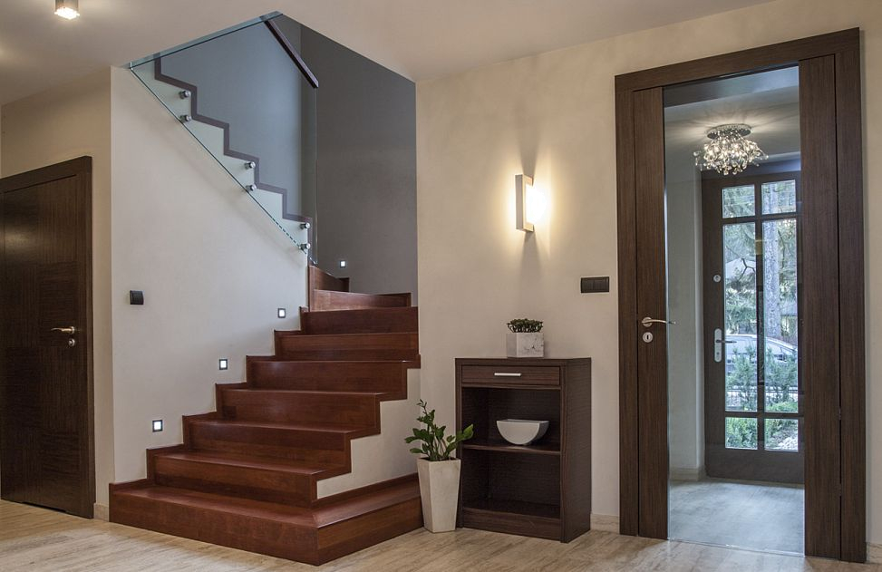 Дверь с зеркалом можно установить в стандартном коробе, компланарном, но особенно эффектно смотрится в скрытом алюминиевом коробе, так полотно, словно, “растворяется” в пространстве, добавляя ему “глубину”. Более графичный вариант можно сделать за счет алюминиевой кромки контрастного цвета.