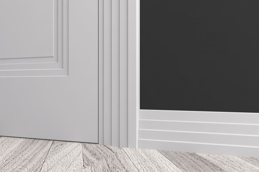 Дверь можно укомплектовать наличником и плинтусом с таким же рисунком.