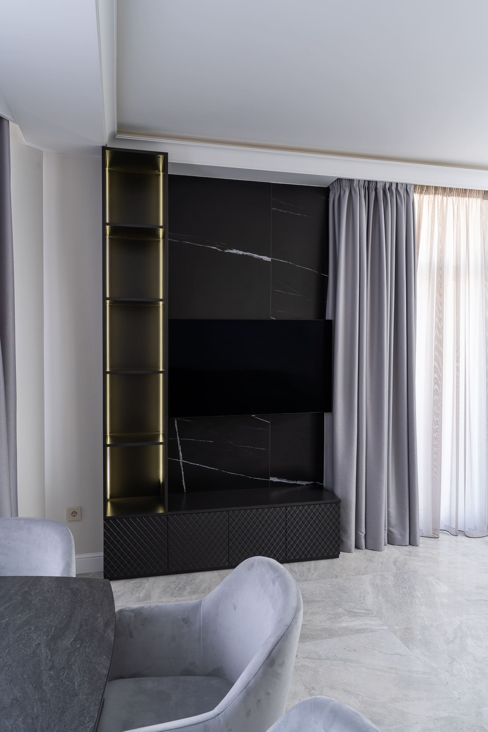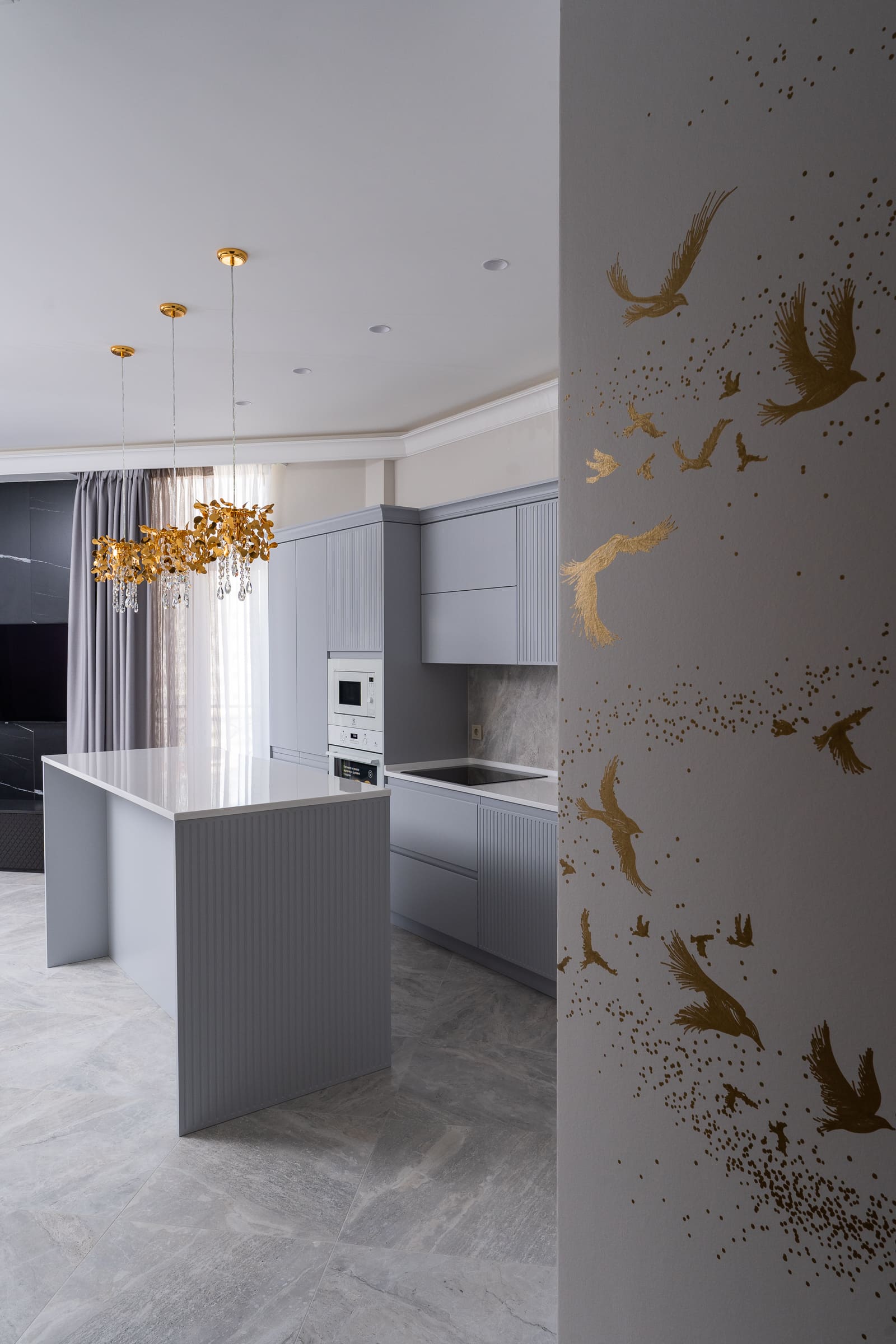 Утонченный и нежный дизайн-проект был создан для пары, которая часто наведывается в Геленджик для отдыха. У хозяев уже взрослые дети, которые живут отдельно, поэтому они могли позволить себе полностью отдаться эстетике и красоте.