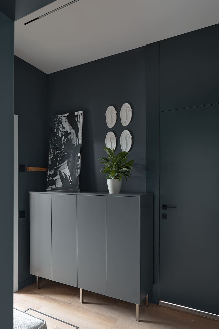 Двери Porte в оттенке атрацит идеально сочетаются с остальной отделкой, подчеркивая стиль и индивидуальность дизайна. В интерьере каждая деталь важна, и выбор изделий от фабрики «Терем» стал залогом качественного и эстетически привлекательного результата.