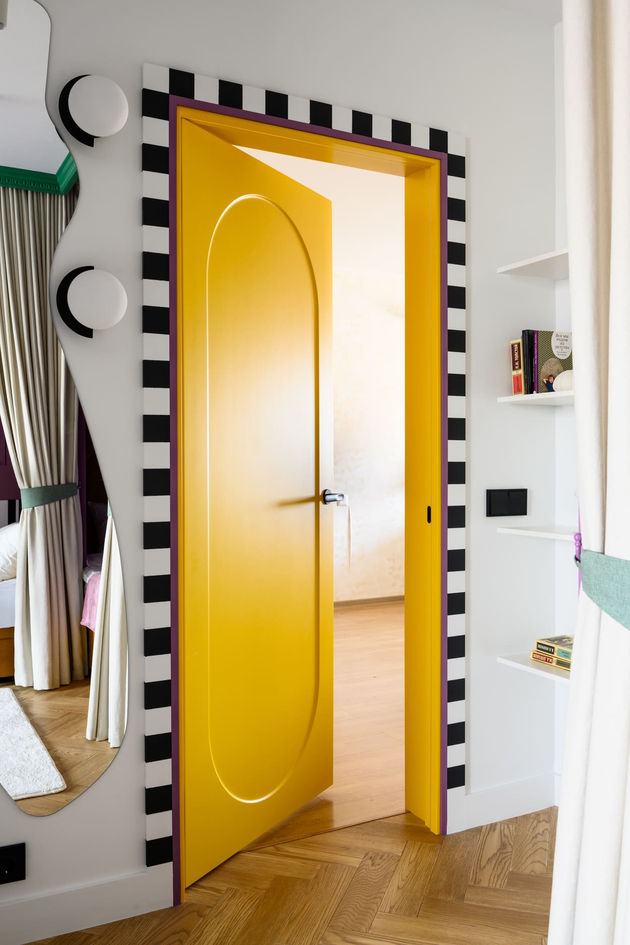 Новая дверь Anse стала ярким акцентом. Полотно выделяется изящной фрезеровкой и покрыто эмалью. Врезка фурнитуры производилась на фабрике, что обеспечило быструю и простую установку. Финальным штрихом служит стильная графичная ручка.