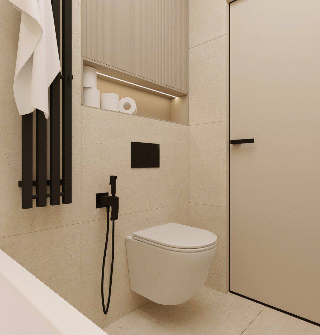 Ключевая особенность — двери скрытого монтажа, которые сливаются со стенами и не нарушают чистоту линий.