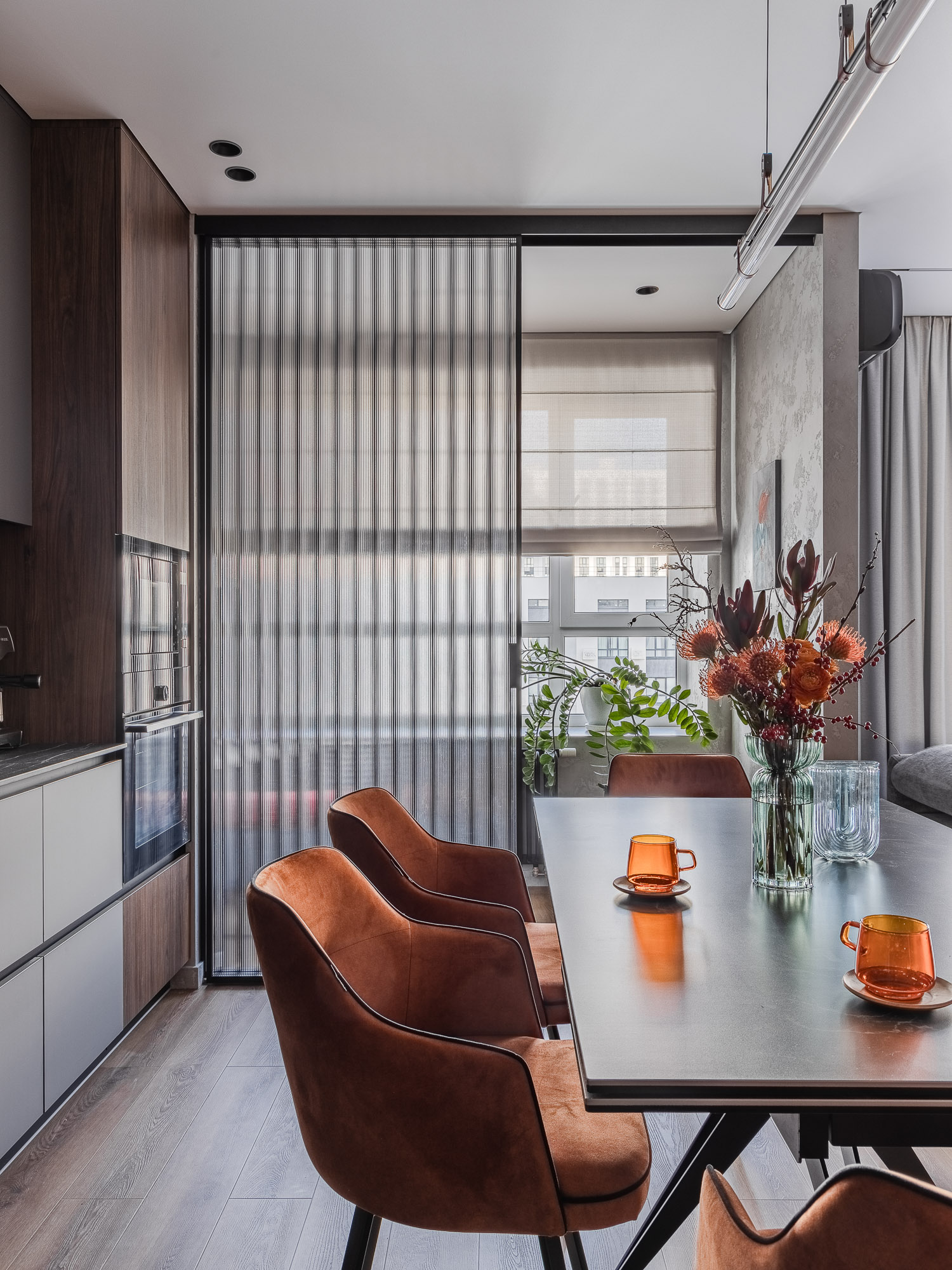 Этот интерьер создан с заботой о комфорте и уюте для всей семьи. Он наполнен серыми, бежевыми и белыми тонами, которые создают атмосферу спокойствия и гармонии.