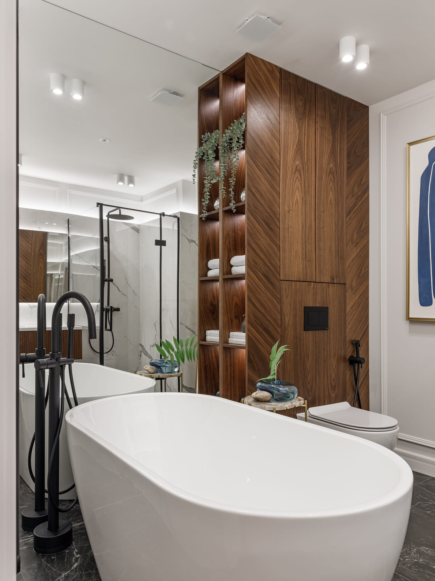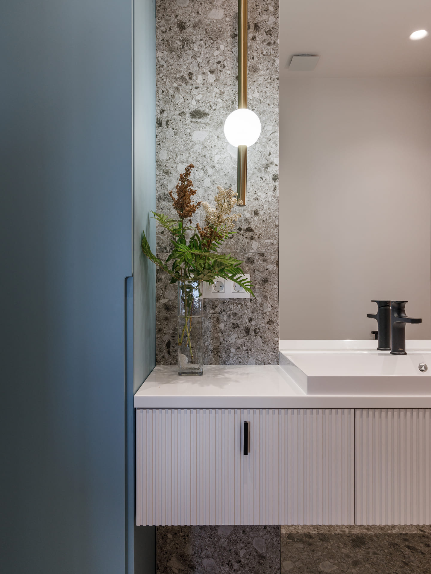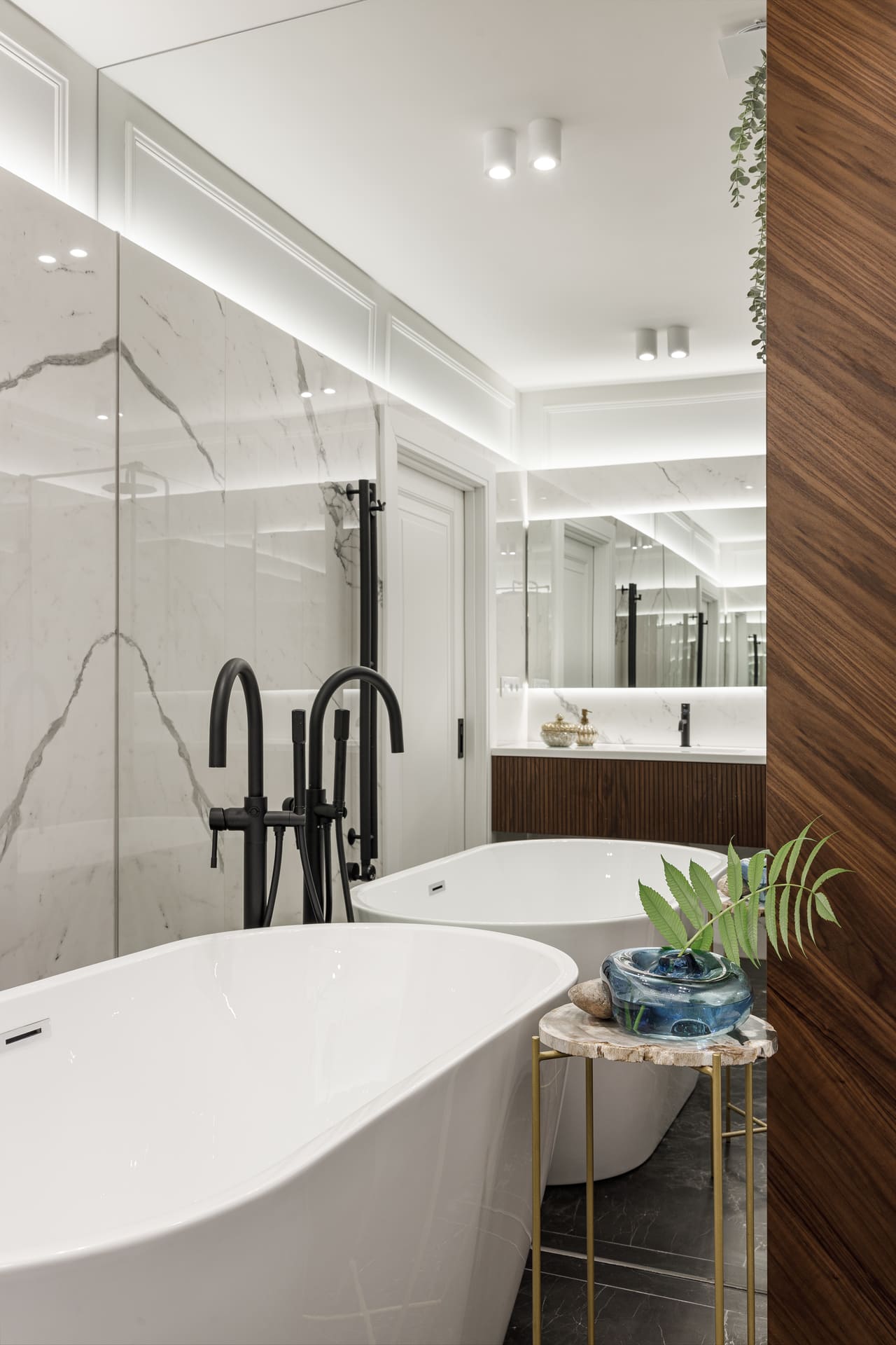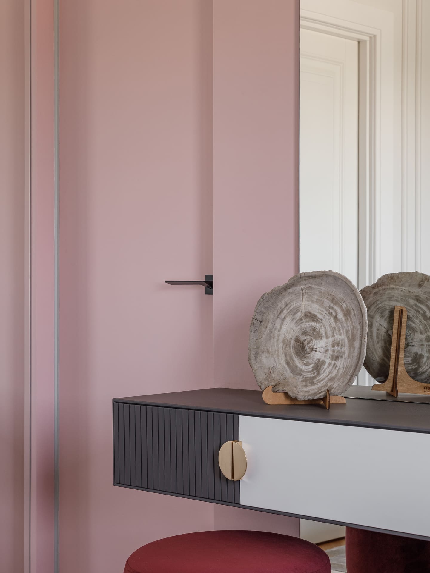 В проекте особое внимание уделено межкомнатным дверям. Двери Elegance 1 и Secret прекрасно вписываются в общий стиль, добавляя нотки изысканности и гармонии. Эти двери не только эффективны с точки зрения функциональности, но и становятся важными элементами декора, которые подчеркивают общую концепцию квартиры.