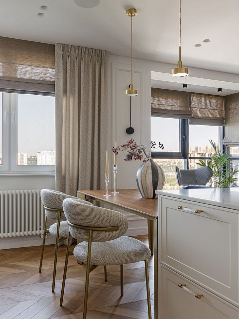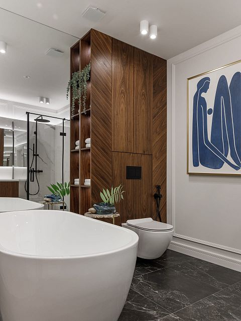 Проект "Светлая квартира для девушки" выполнен в стиле неоклассики, который идеально сочетает элегантность и технологичность. Этот стиль позволяет создать атмосферу утонченности, при этом внедряя современные решения, что делает интерьер не только красивым, но и функциональным.