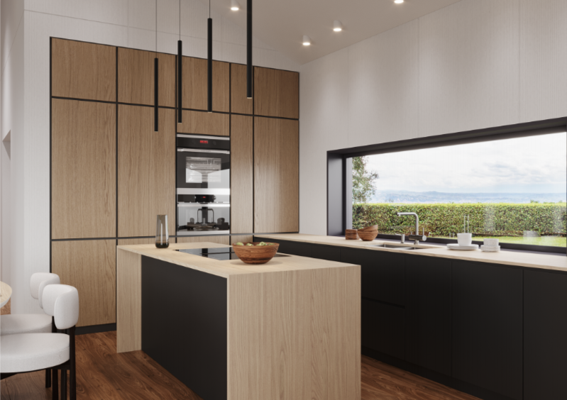 Особое внимание уделяется функциональности общих пространств: просторная кухня-гостиная с кухонным островом служит идеальным местом для семейного времяпрепровождения. Планировка включает несколько зон – гостевой санузел, постирочную и кладовую. Выход на террасу из гостиной создает дополнительное пространство для отдыха на свежем воздухе.