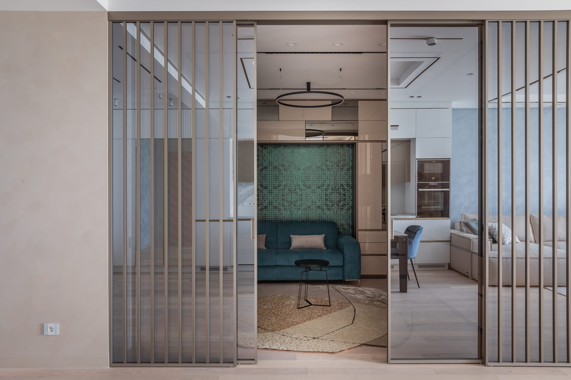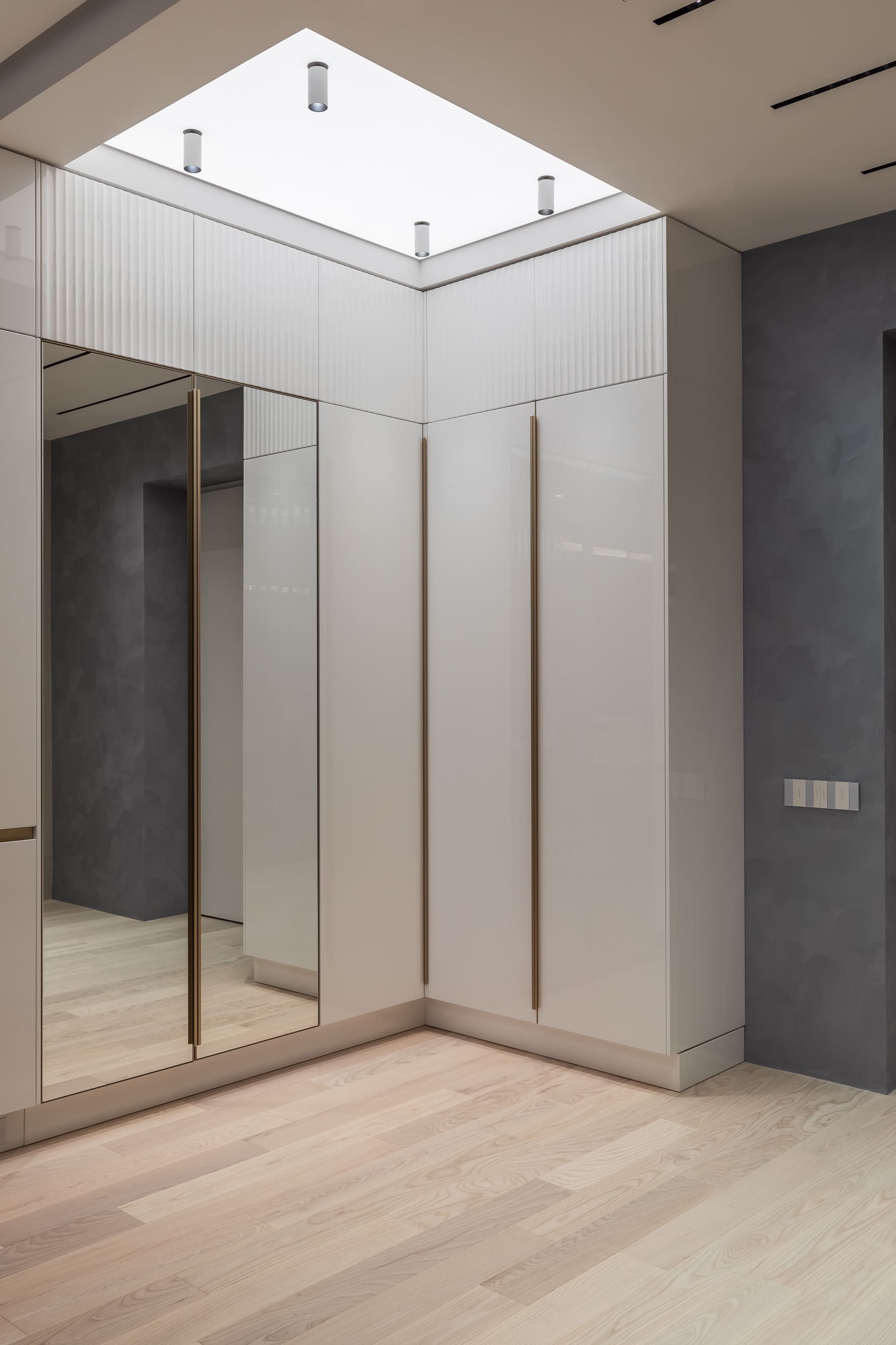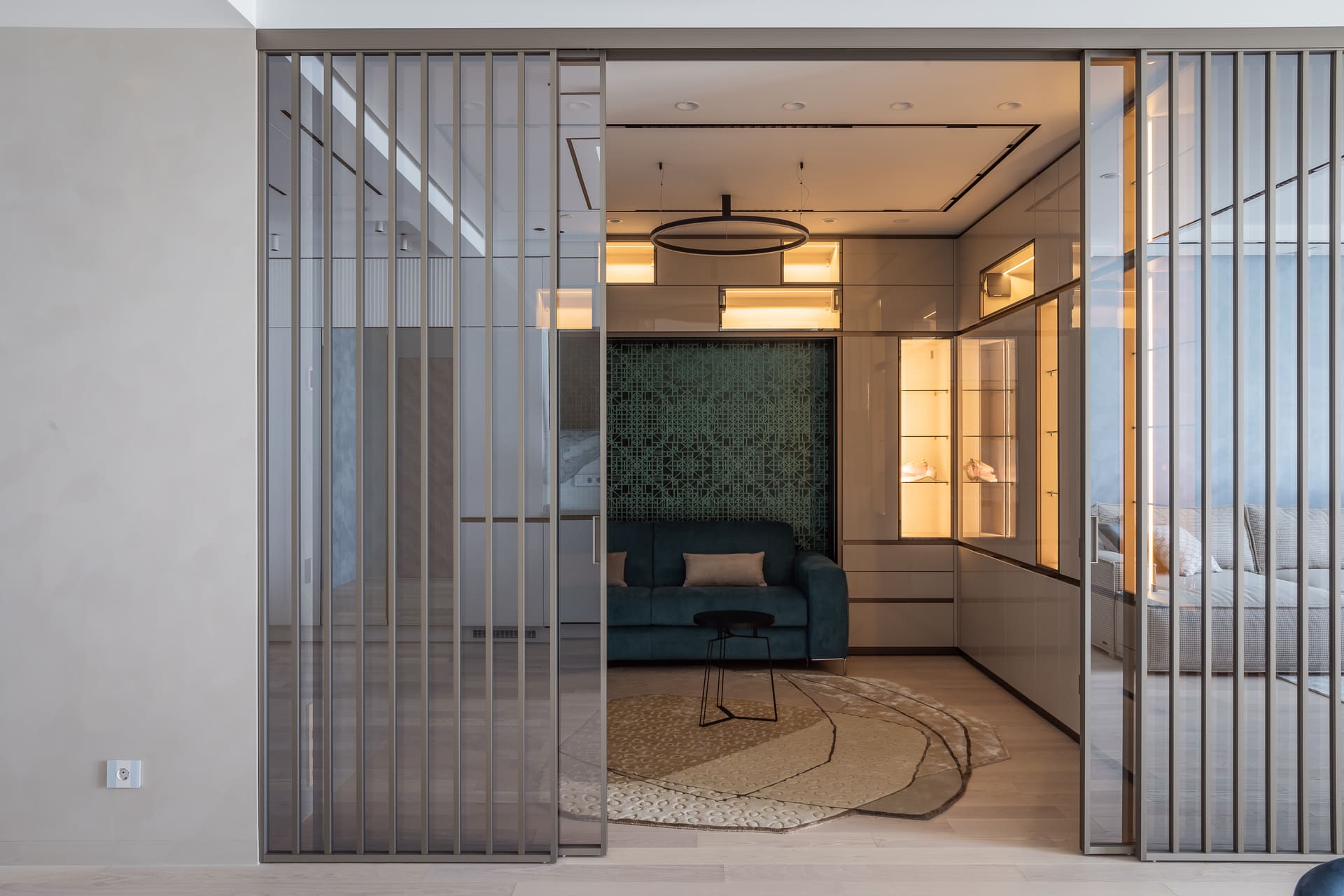 Особое внимание в проекте уделено межкомнатным дверям Unit 05 из коллекции Design. Эти двери не только функциональны, но и прекрасно вписываются в общий стиль интерьера, добавляя элегантность и современность. Их лаконичный дизайн и качественные материалы подчеркивают концепцию "Санторини - ода природе", соединяя природные мотивы с современными тенденциями.