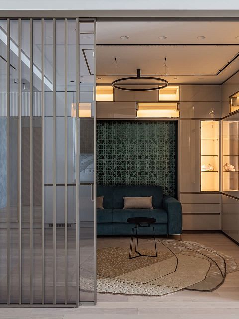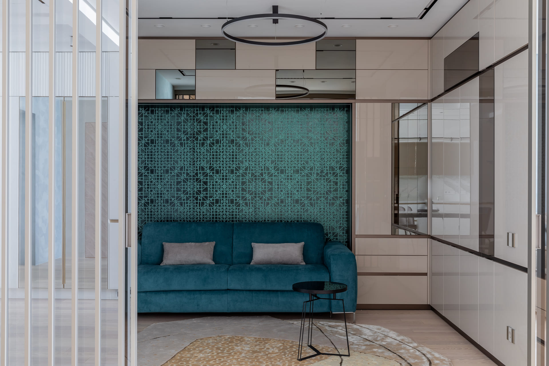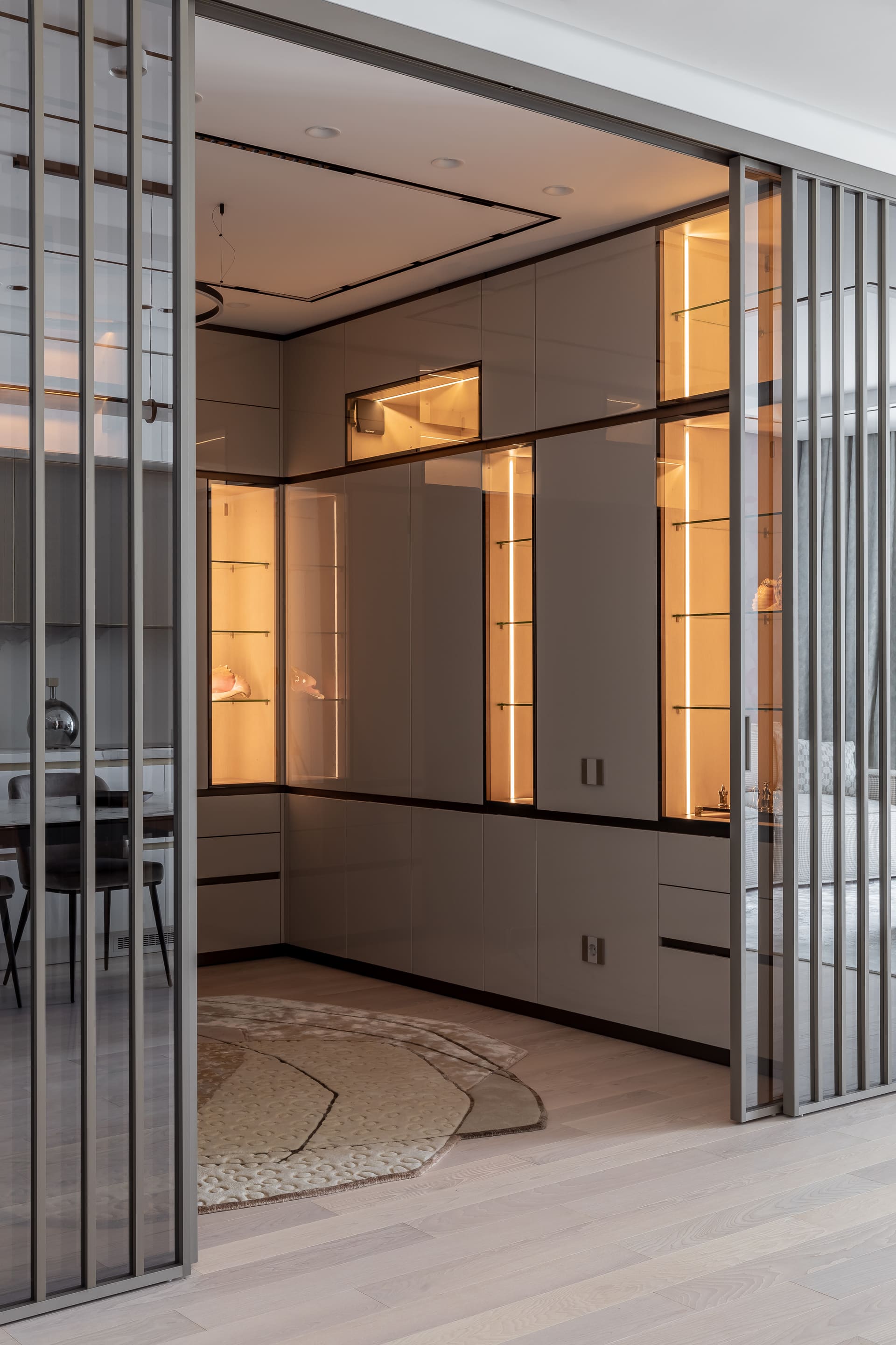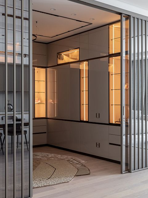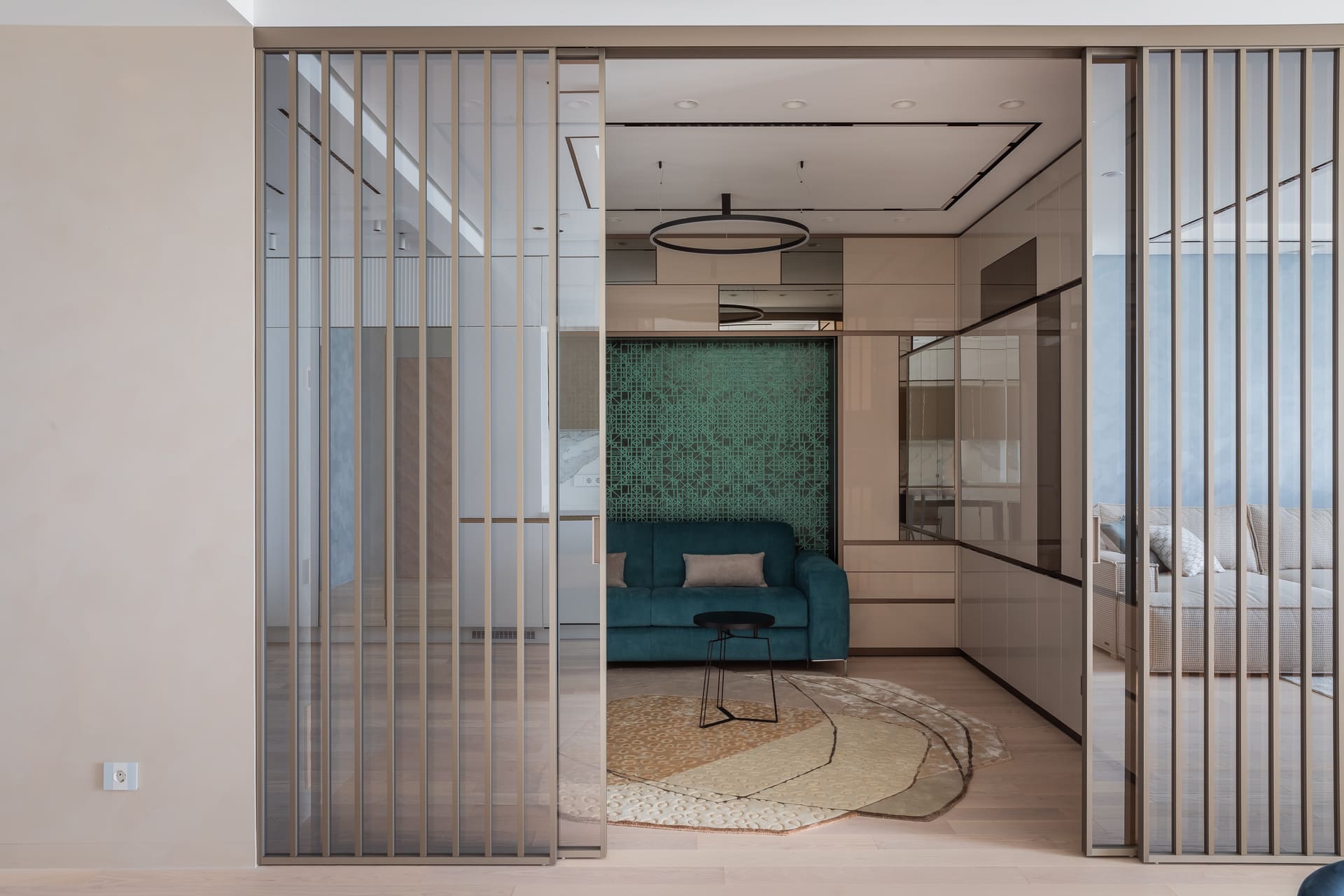 Особое внимание в проекте уделено межкомнатным дверям Unit 05 из коллекции Design. Эти двери не только функциональны, но и прекрасно вписываются в общий стиль интерьера, добавляя элегантность и современность. Их лаконичный дизайн и качественные материалы подчеркивают концепцию "Санторини - ода природе", соединяя природные мотивы с современными тенденциями.