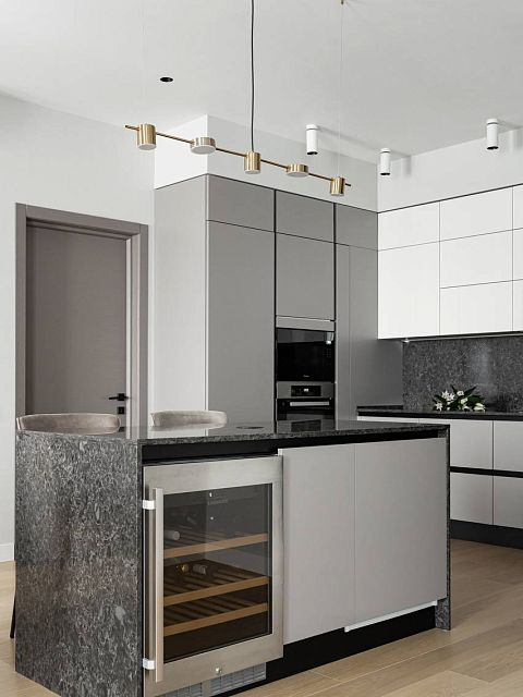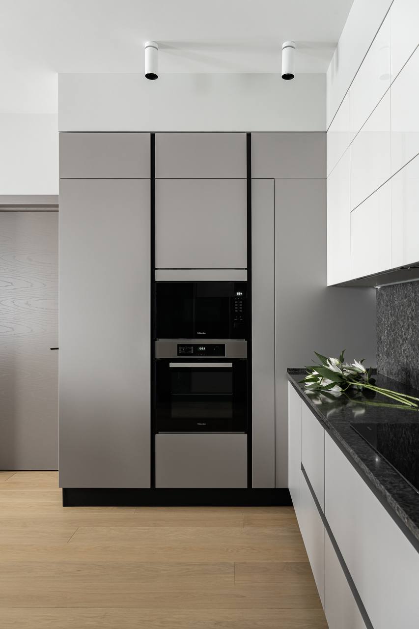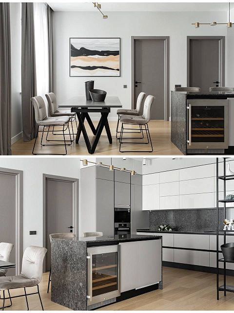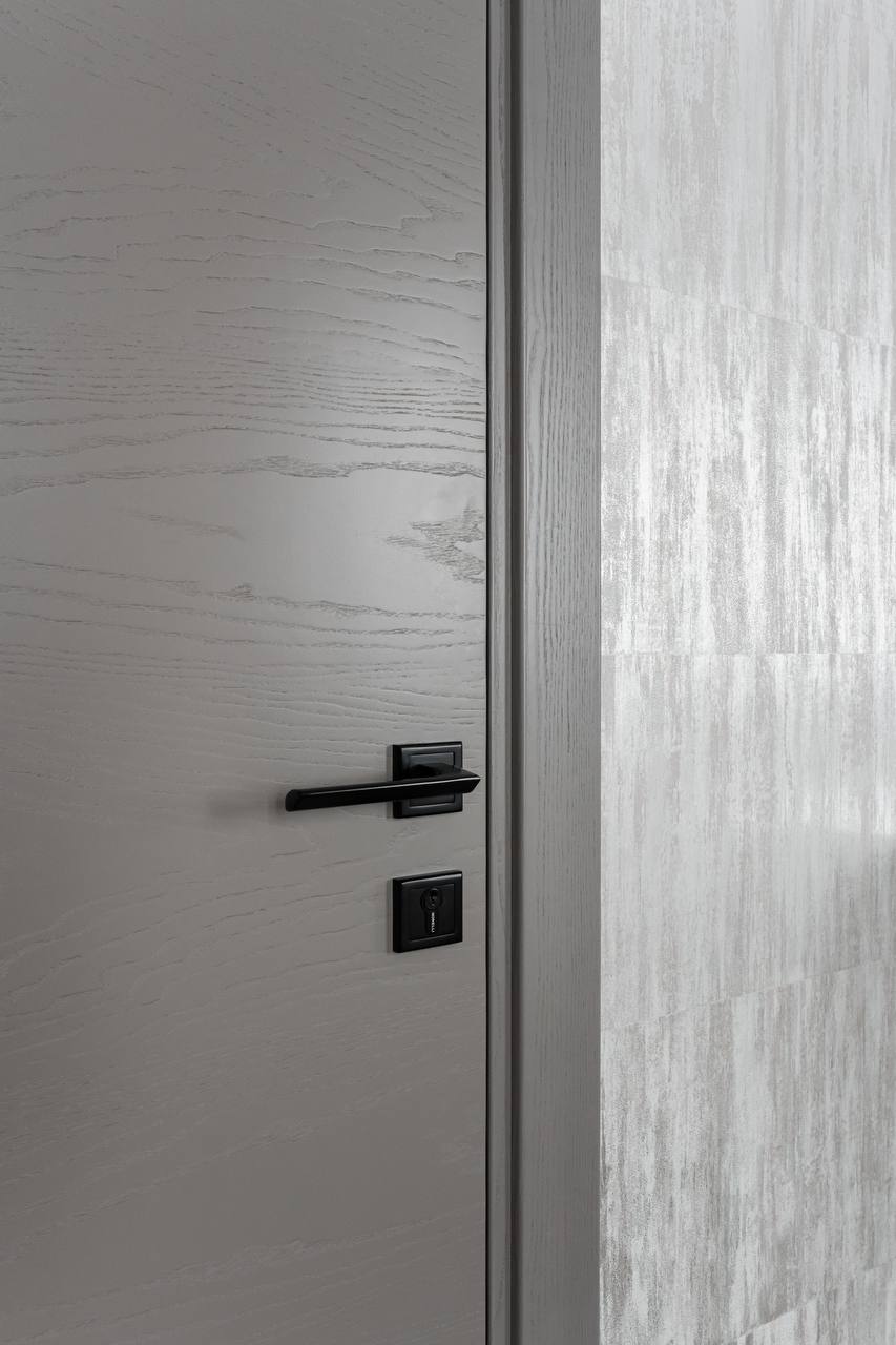 В проекте были использованы межкомнатные двери от фабрики Терем из коллекции Techno (модель Porte 01, в покрытии шпон «крашенный ясень»), которые со слов самого дизайнера отлично гармонируют с интерьером и задают определенный ритм фону.Приятно внести свой вклад в такой стильный интерьер. Благодарим за доверие Анастасию Никитину.