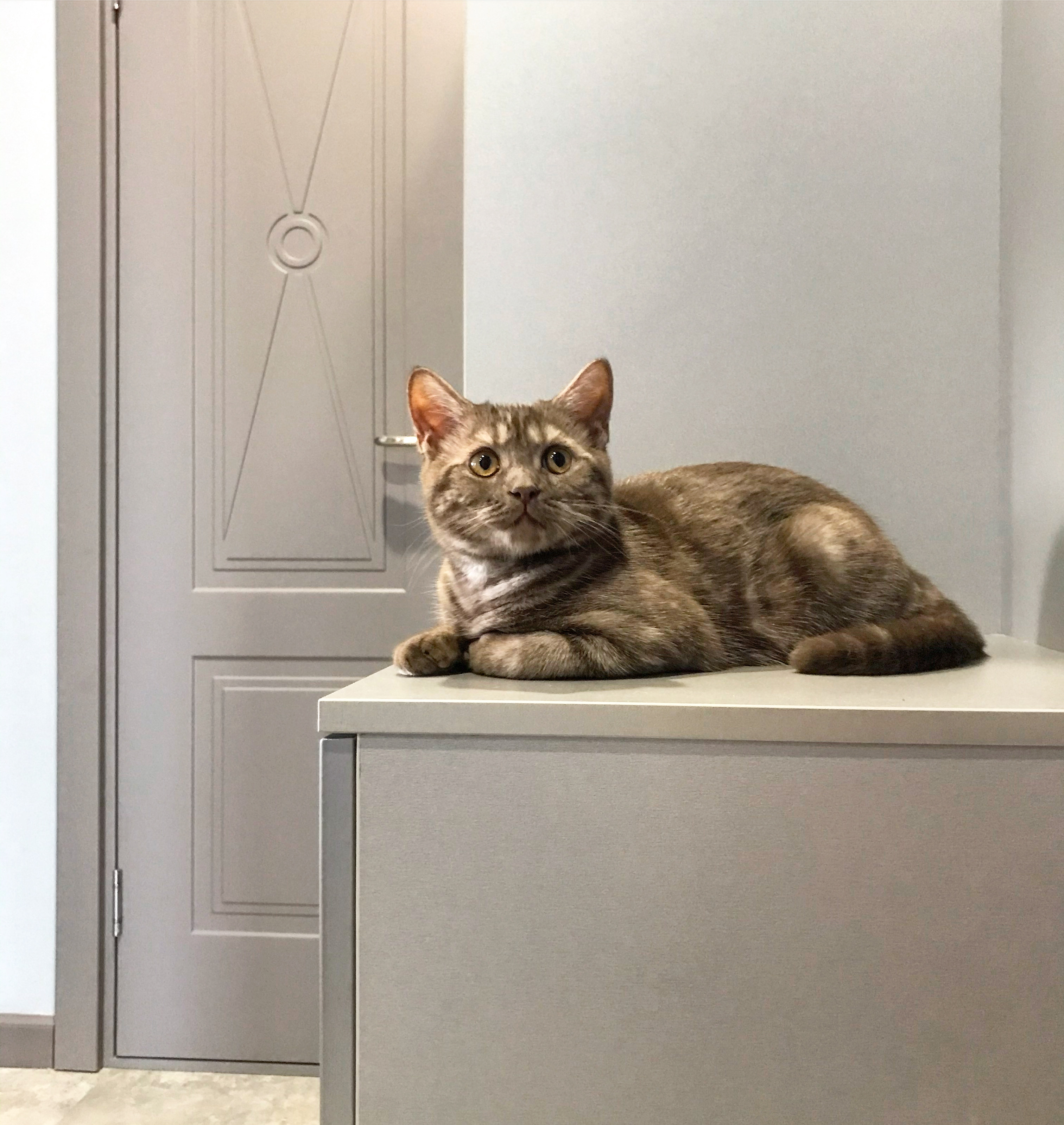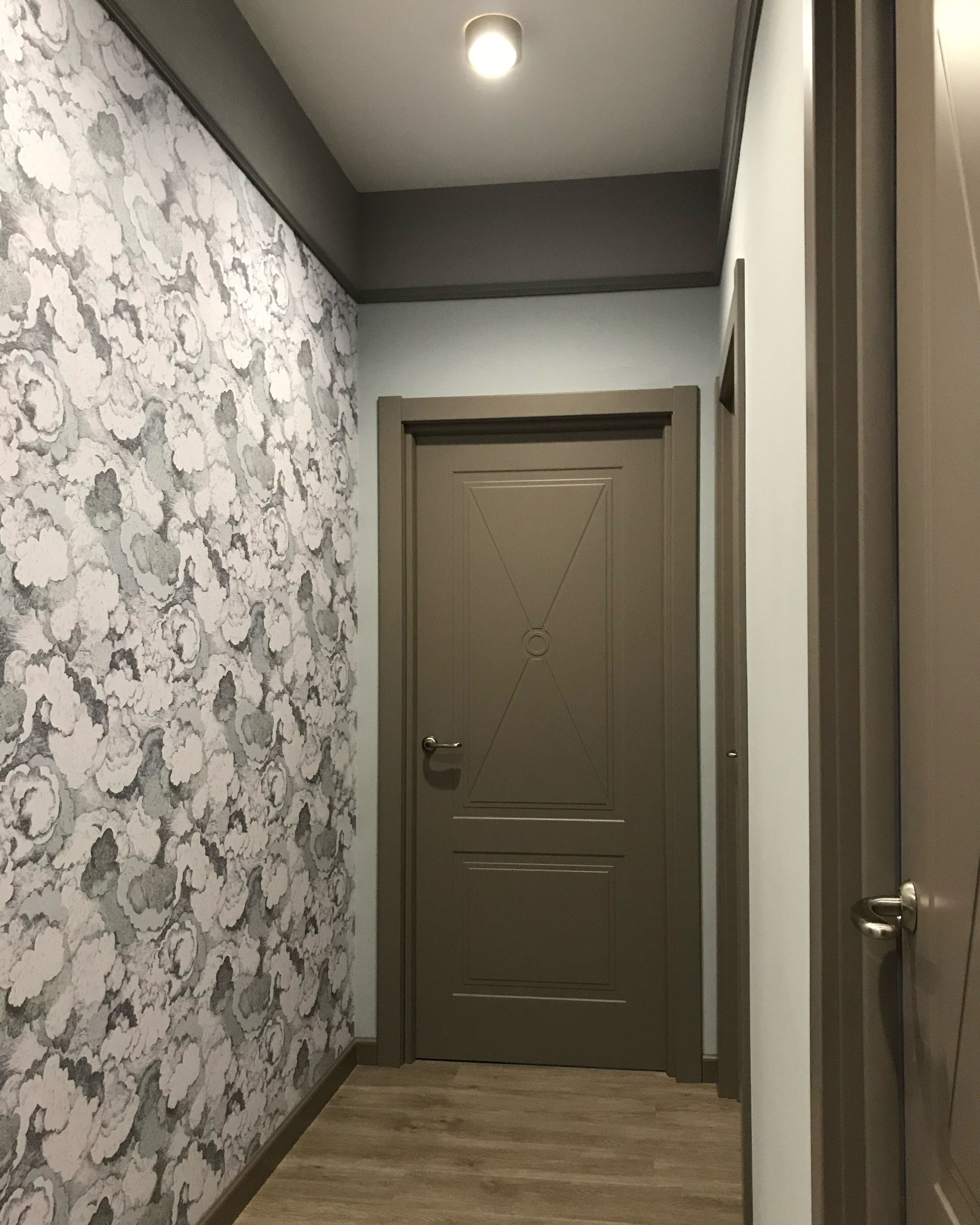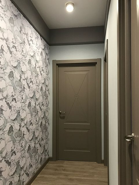 Двери выбирали по нескольким параметрам: не слишком современная, но и не привычная классическая модель, возможность покраски в нужный оттенок серого и изготовления накладки на входную дверь, плюс разумные цены».