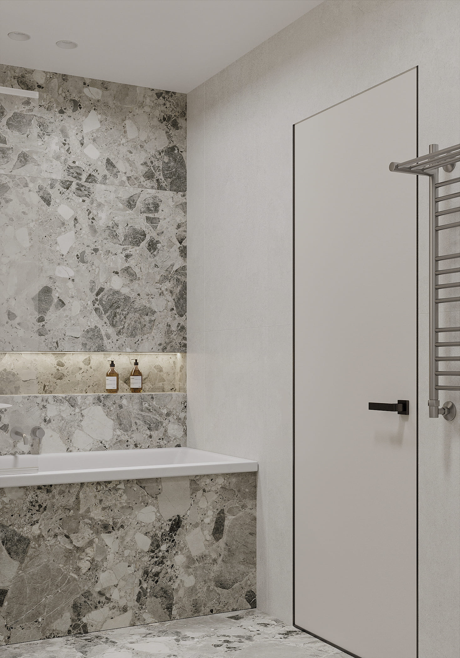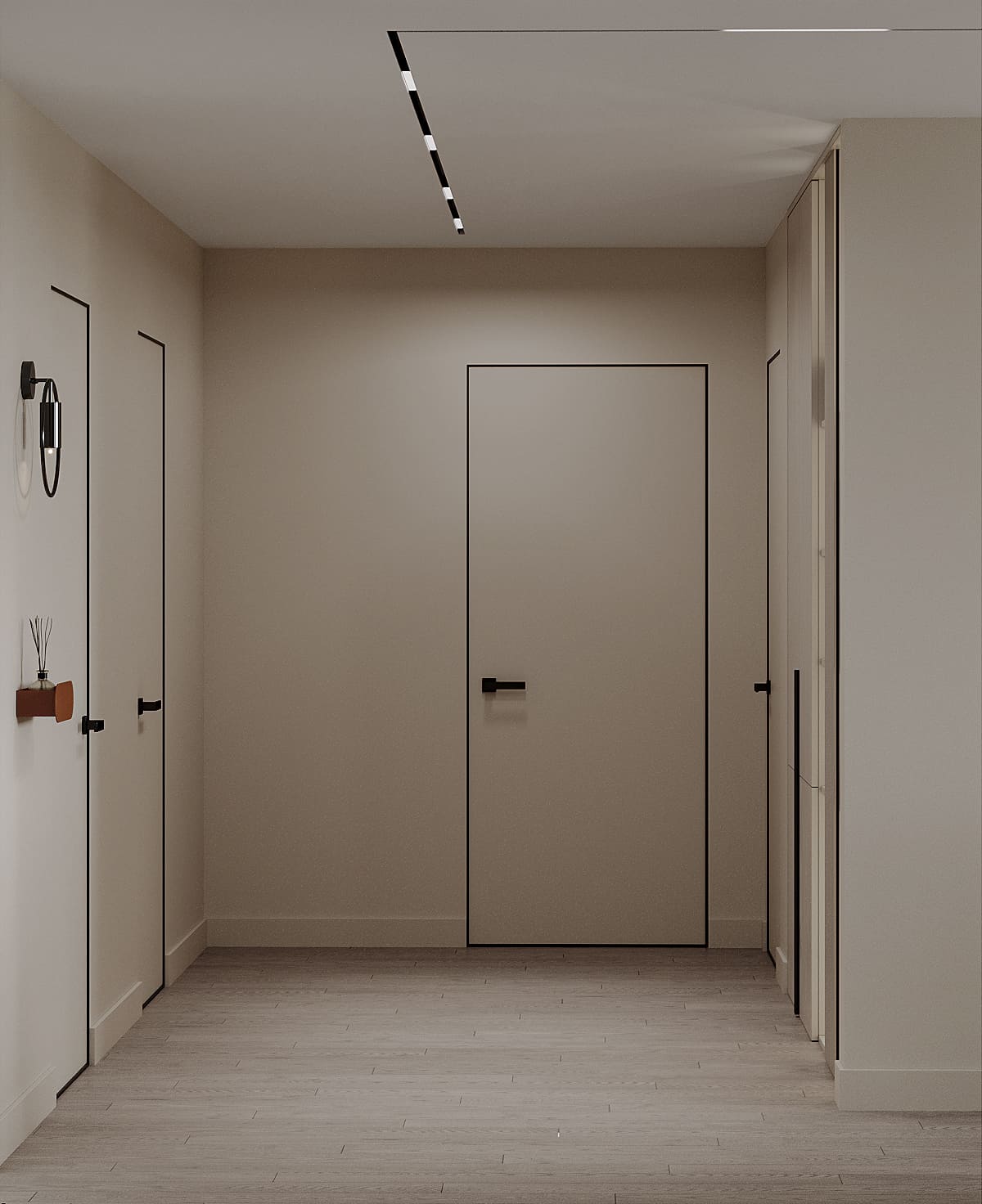 В данном проекте квартиры акцент сделан на создании уюта и гармонии. Использование межкомнатной двери скрытого монтажа под покраску позволило достичь визуальной целостности пространства и подчеркнуть элегантность интерьера.
