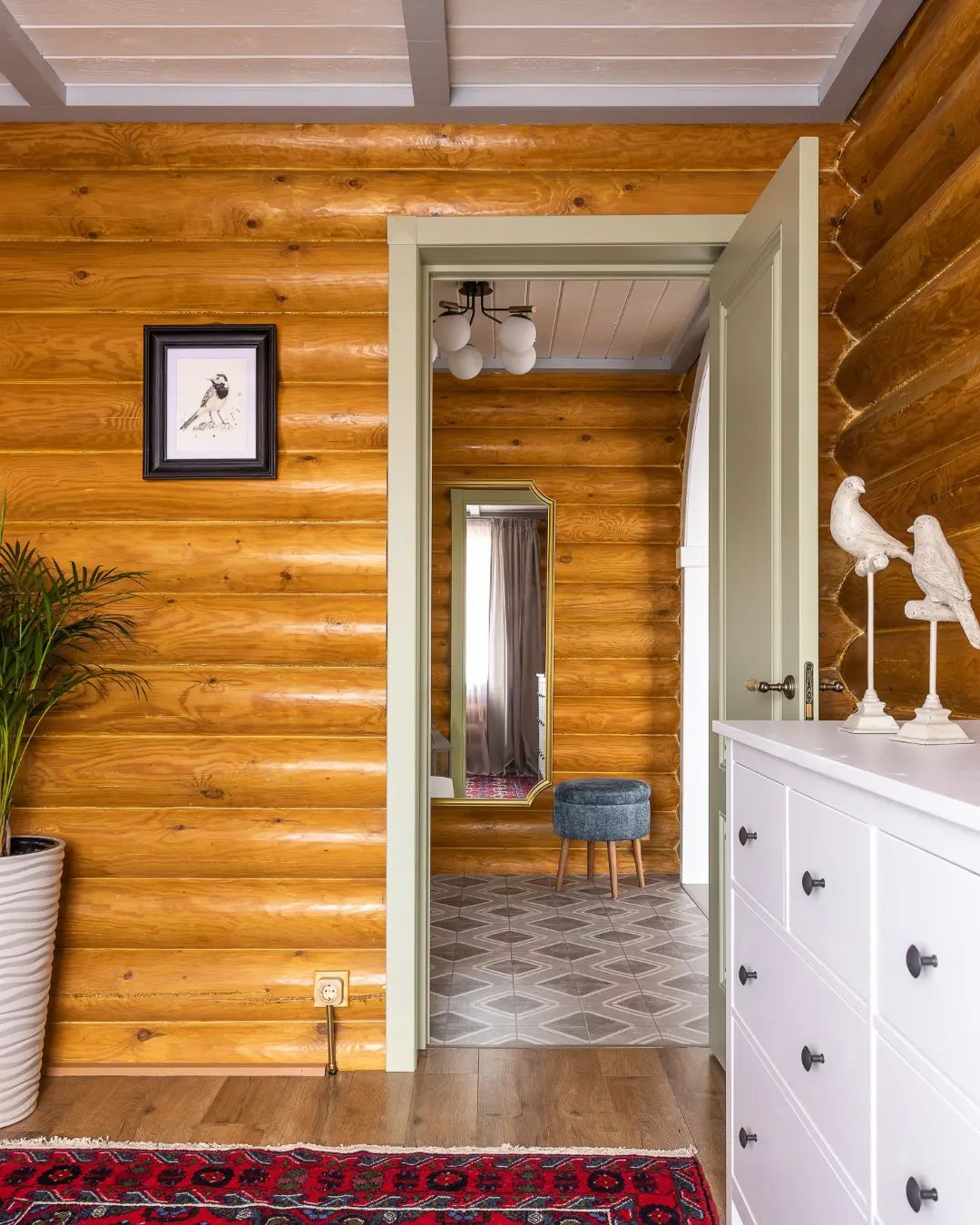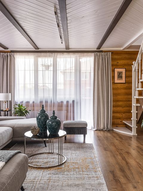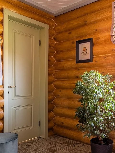 Насыщенный цвет золотистого дерева стен умело сбалансирован спокойными цветами текстиля и мебели. В этом же ключе выполнены двери Turin 2 из классической коллекции Modern, шафрановый цвет эмали которых абсолютно гармонично вписывается в общую концепцию проекта. А наличие ярких и красивых акцентных деталей – консолей, подушек, ваз и ламп – привнесло в интерьер нотки неповторимости и шарма.
