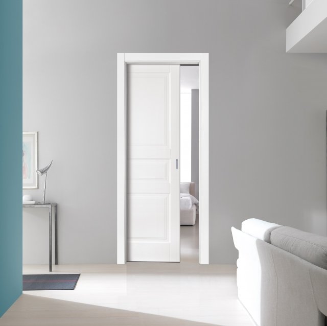 Пенальная система открытия двери SLIDE позволяет полностью скрыть дверное полотно в стену. Такое решение приводит к значительной экономии пространства и оставляет широкий дверной проем открытым, когда дверь находится в скрытом положении, визуально расширяя комнату. Межкомнатную дверь с пенальной системой можно оставить приоткрытой без опасений: она не создает лишних препятствий на пути и не закрывается от сквозняка.