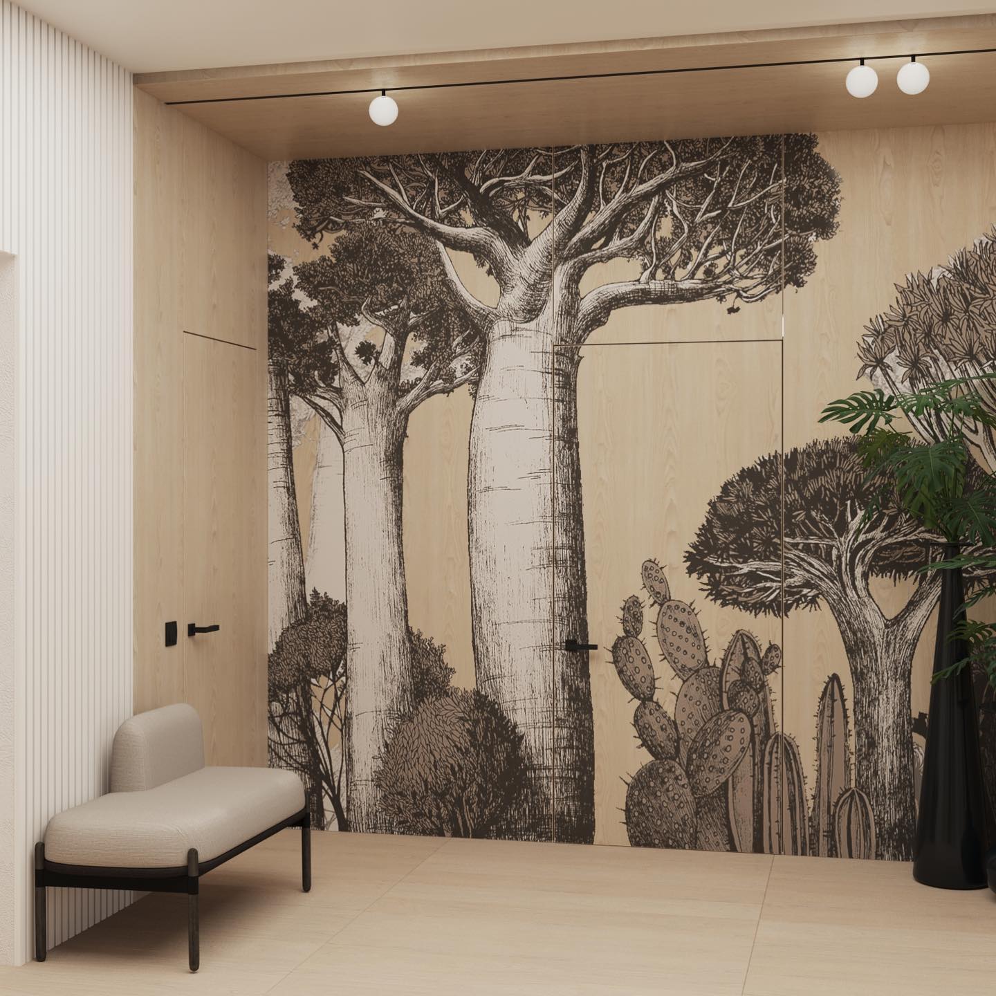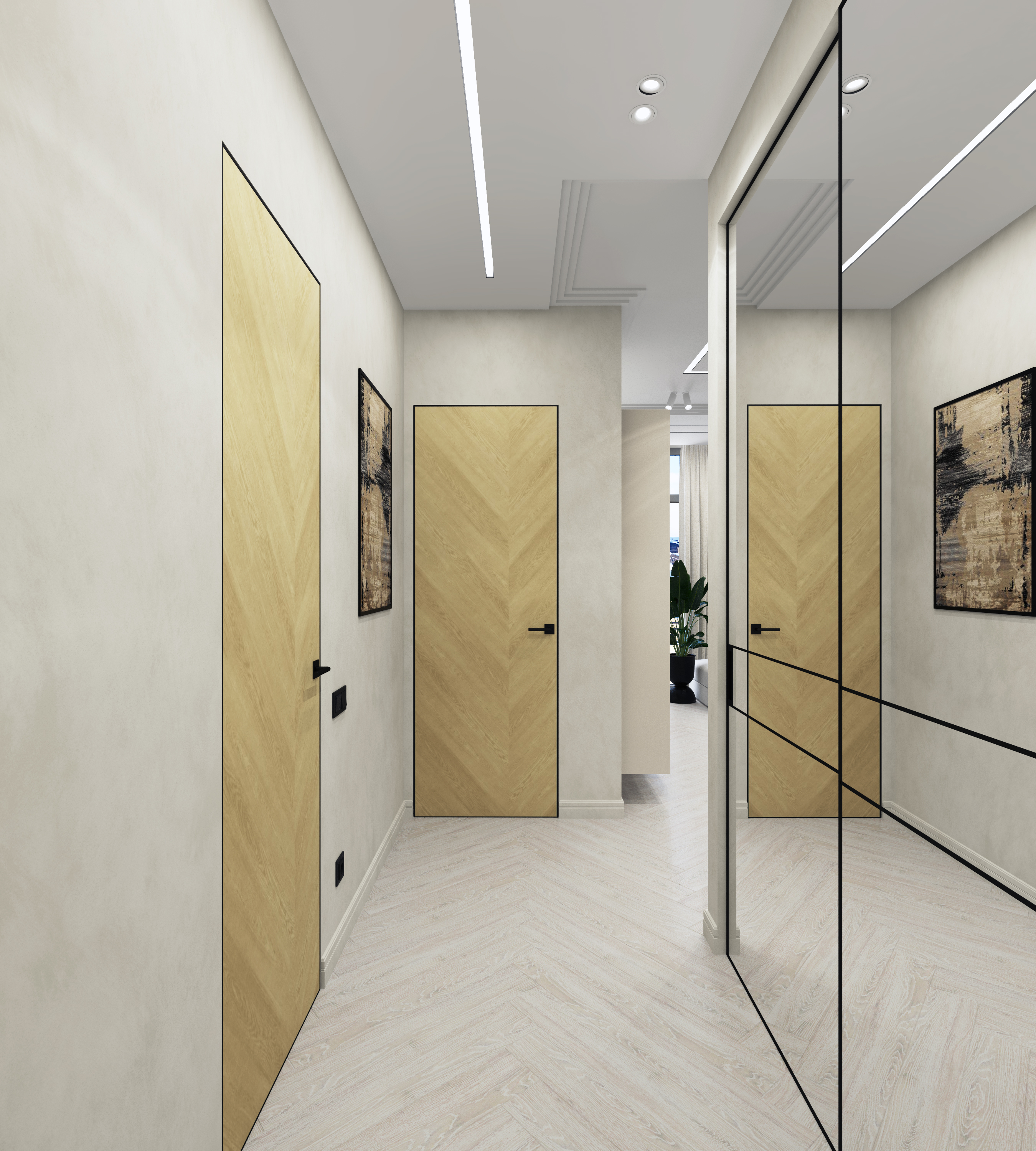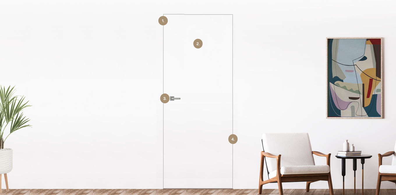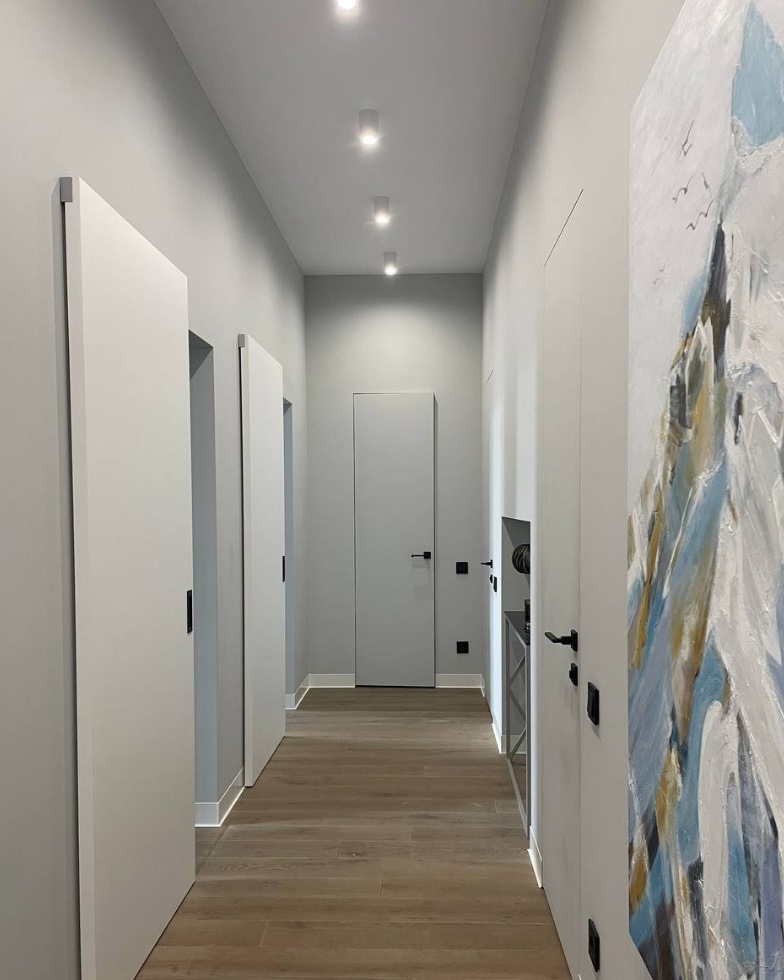 Скрытые двери монтируются до чистовой отделки стен. Это делается, чтобы убрать все неровности и зазоры между стеной, коробом и полотном.