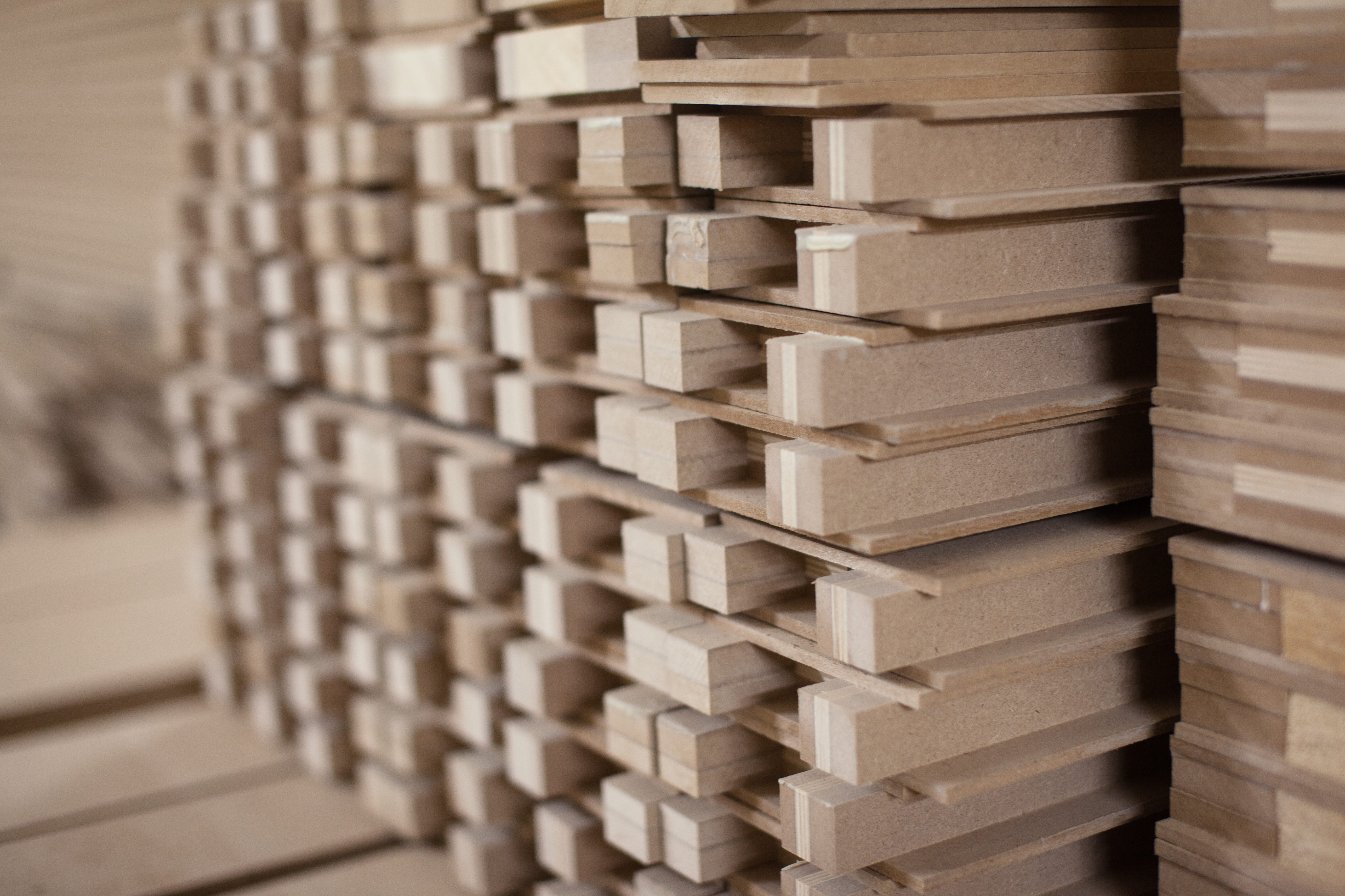 Готовый каркас армируется с двух сторон плитами МДФ EGGER, повышенной толщины 6мм. Сборка осуществляется по технологии холодного, а не горячего прессования. Процедура занимает много времени, но дает полотну идеальную геометрию. Высокие двери от 2,3м дополнительно оснащаются металлическим стержнем - стабилизатором.