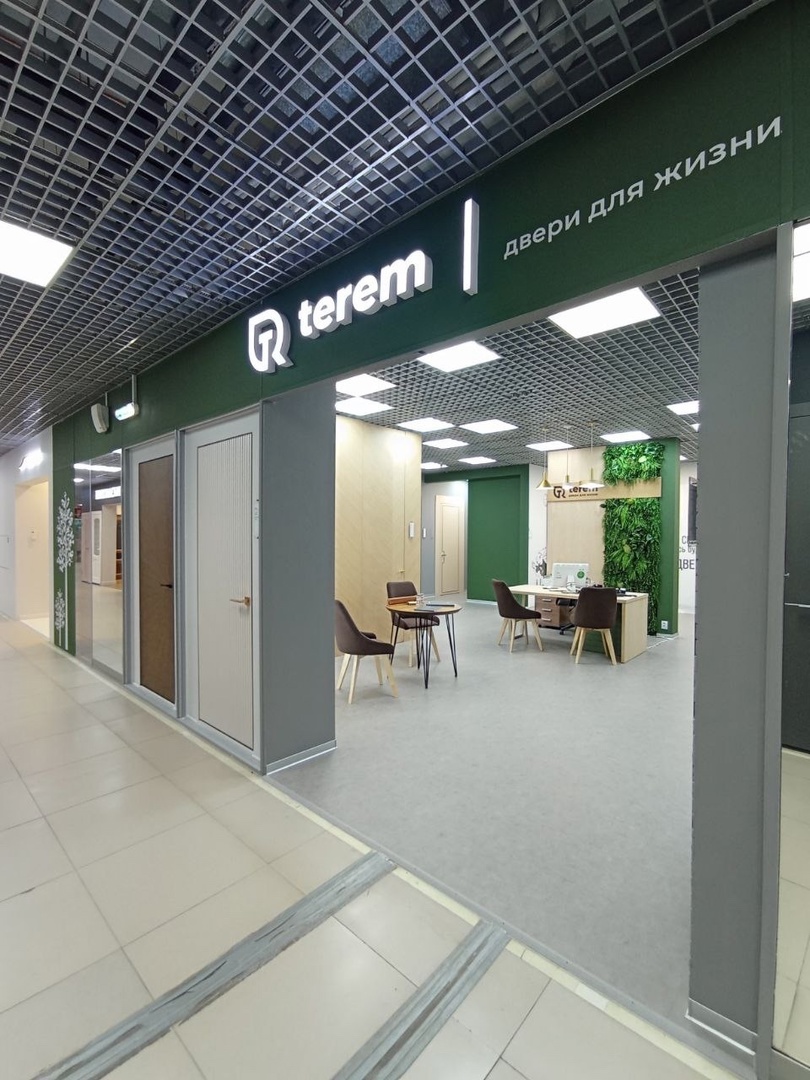 Фирменный салон Terem по адресу Пермь, ТЦ "Радуга", 1 Красноармейская, 6, 1 вход, 1 этаж, салон "Двери Терем"